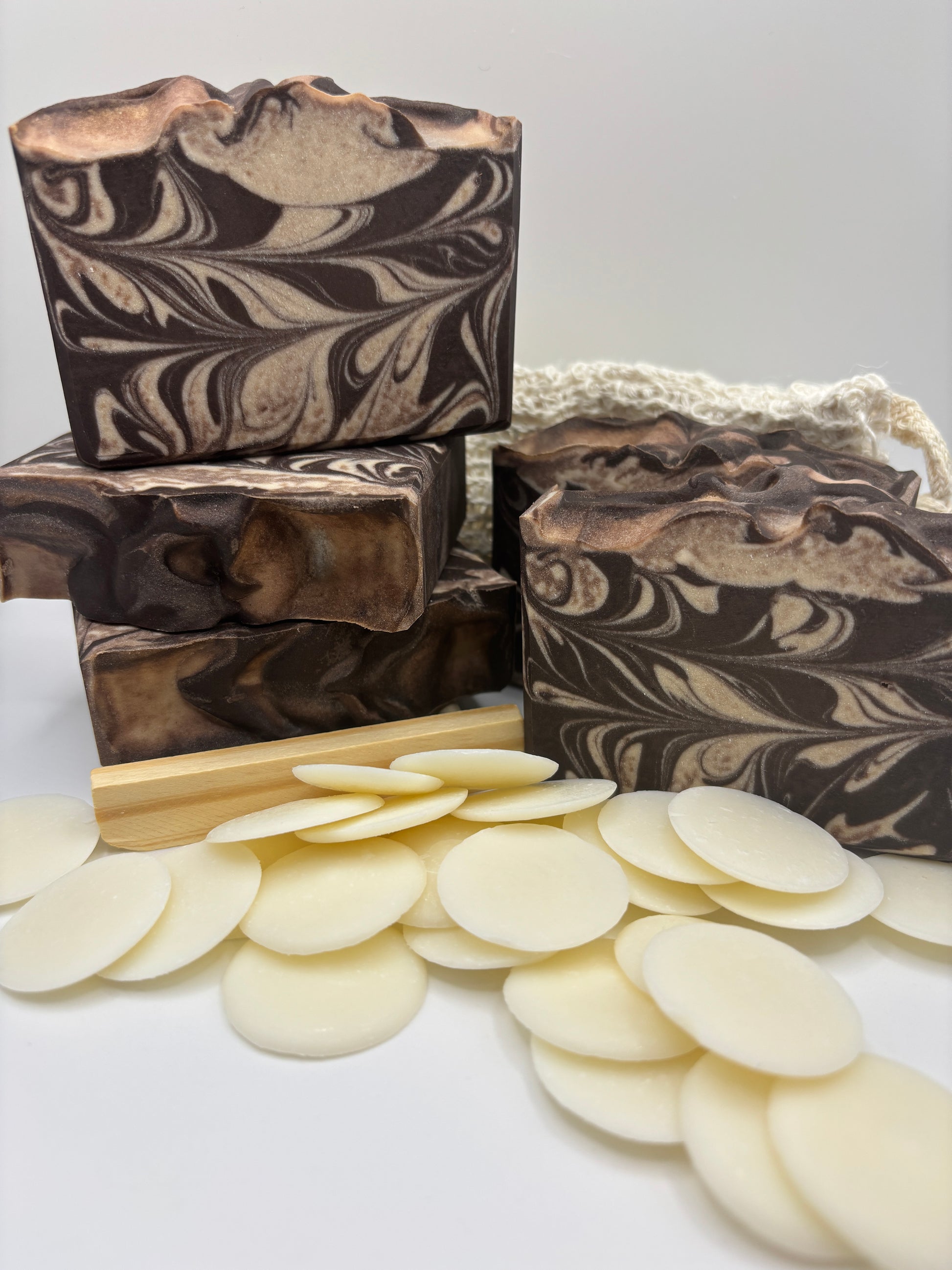 Indulge in the luxurious blend of Cocoa Butter Cashmere, a nourishing goat milk soap bar that combines warmth and sophistication. Rich cocoa butter and creamy coconut create a sumptuous lather, while cedar wood, jasmine, and vanilla notes weave through an enveloping fragrance. This expertly crafted bar delivers gentle cleansing while leaving skin soft and delicately scented.