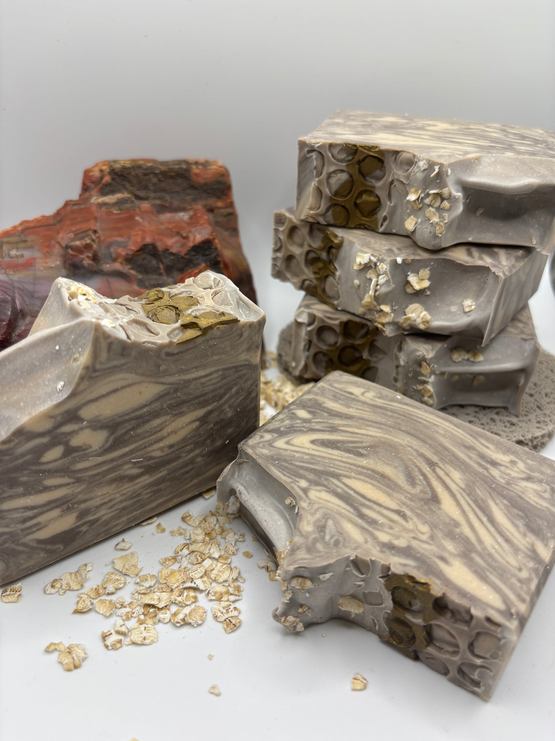 Crafted with nourishing goat's milk and colloidal oats, this artisanal bar combines time-tested ingredients known for their gentle, moisturizing properties. The soothing fragrance of oatmeal, milk, and honey creates a comforting sensory experience with each use. Hand-finished with distinctive artisanal detailing, this soap is a thoughtful addition to any daily routine or gift collection.